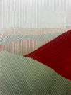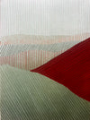 Layers of spray paint and acrylic form a restrained palette, while fine hand stitching traces the contours of the land, introducing both structure and tactility. The composition captures the quiet shifts in colour and atmosphere that occur as daylight moves across the hills.